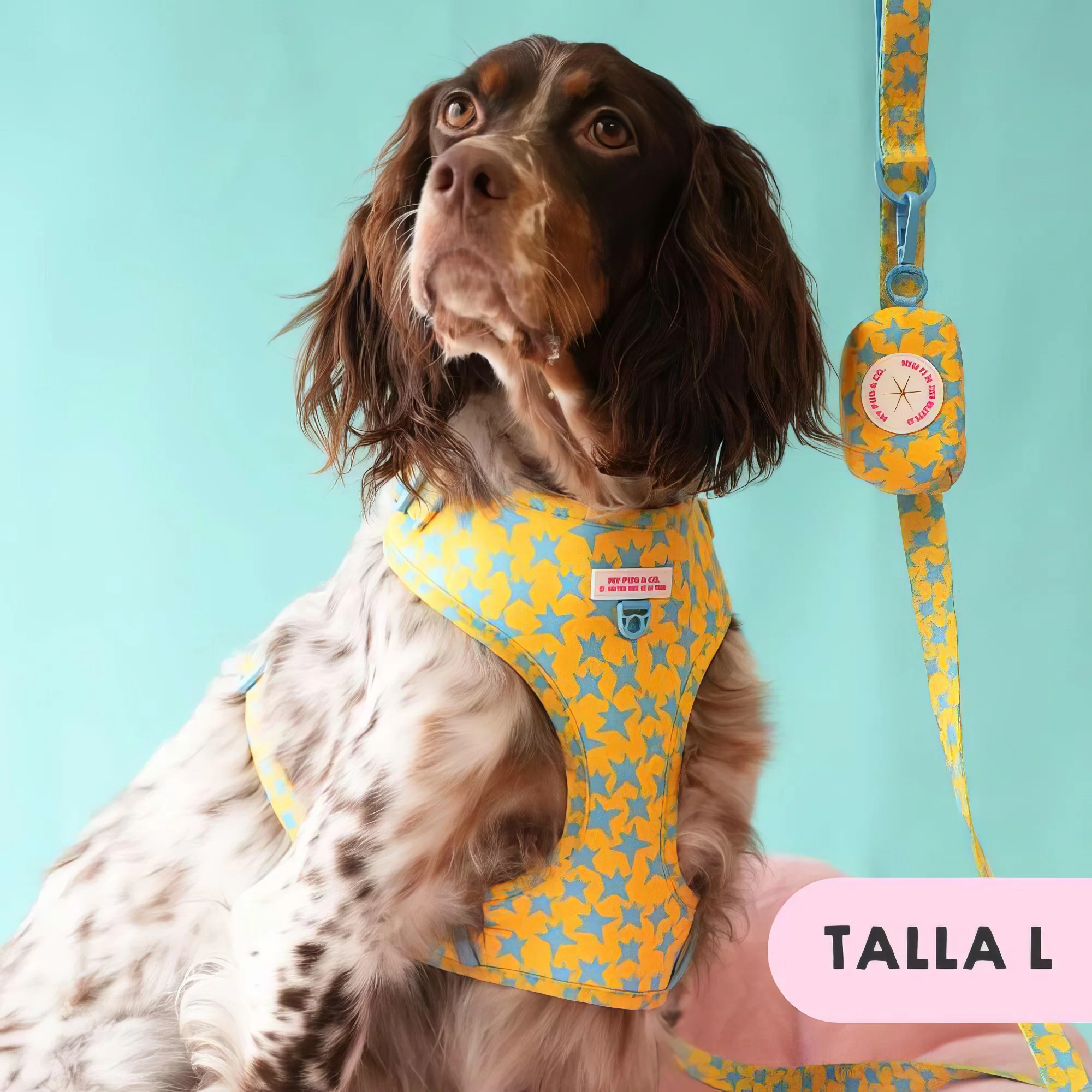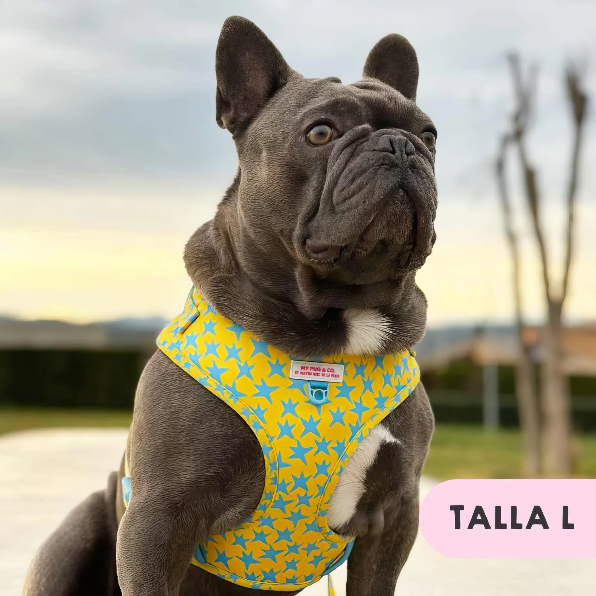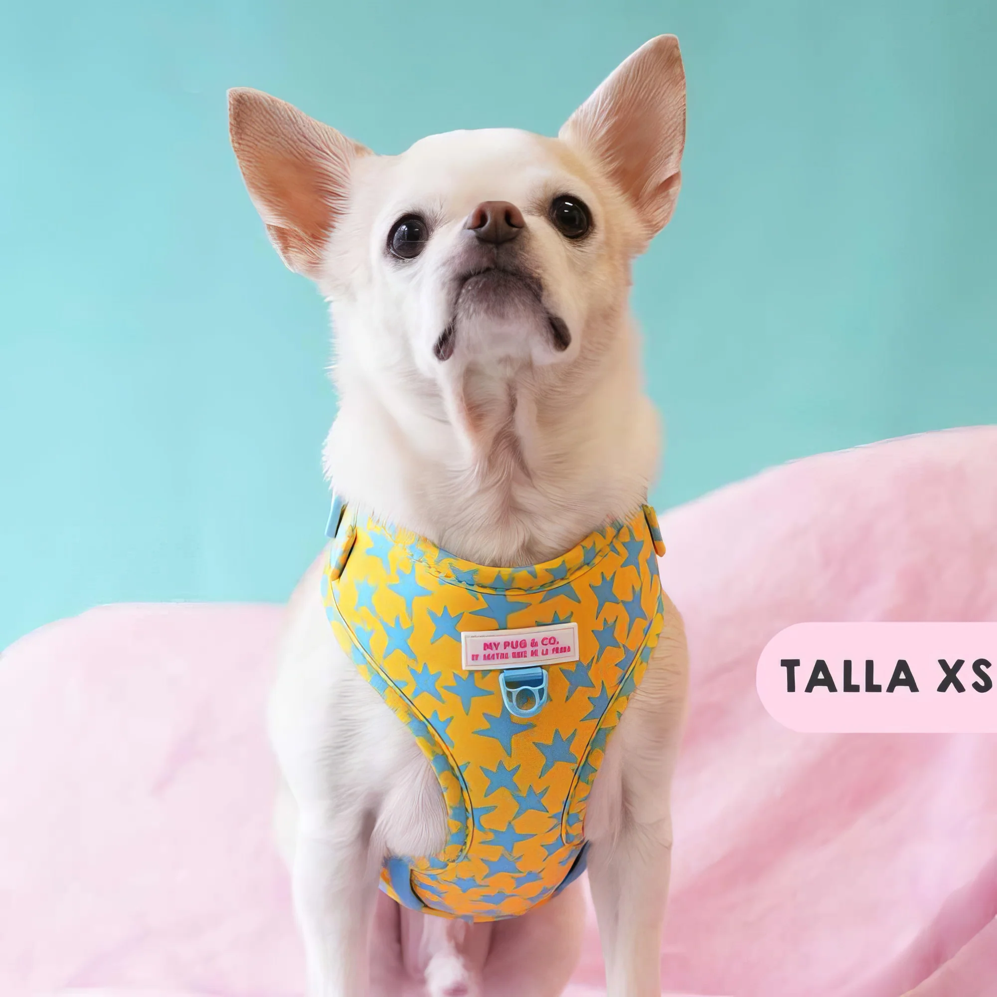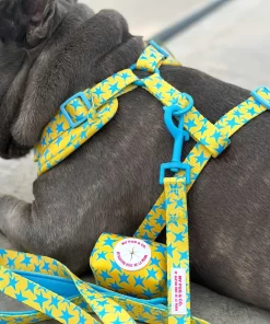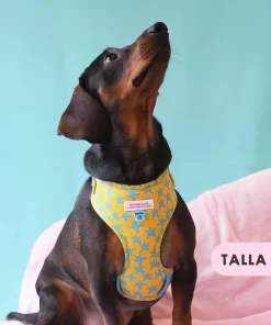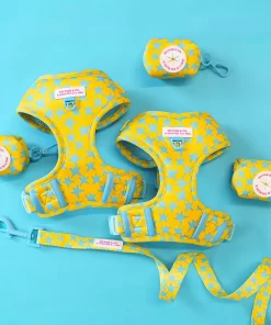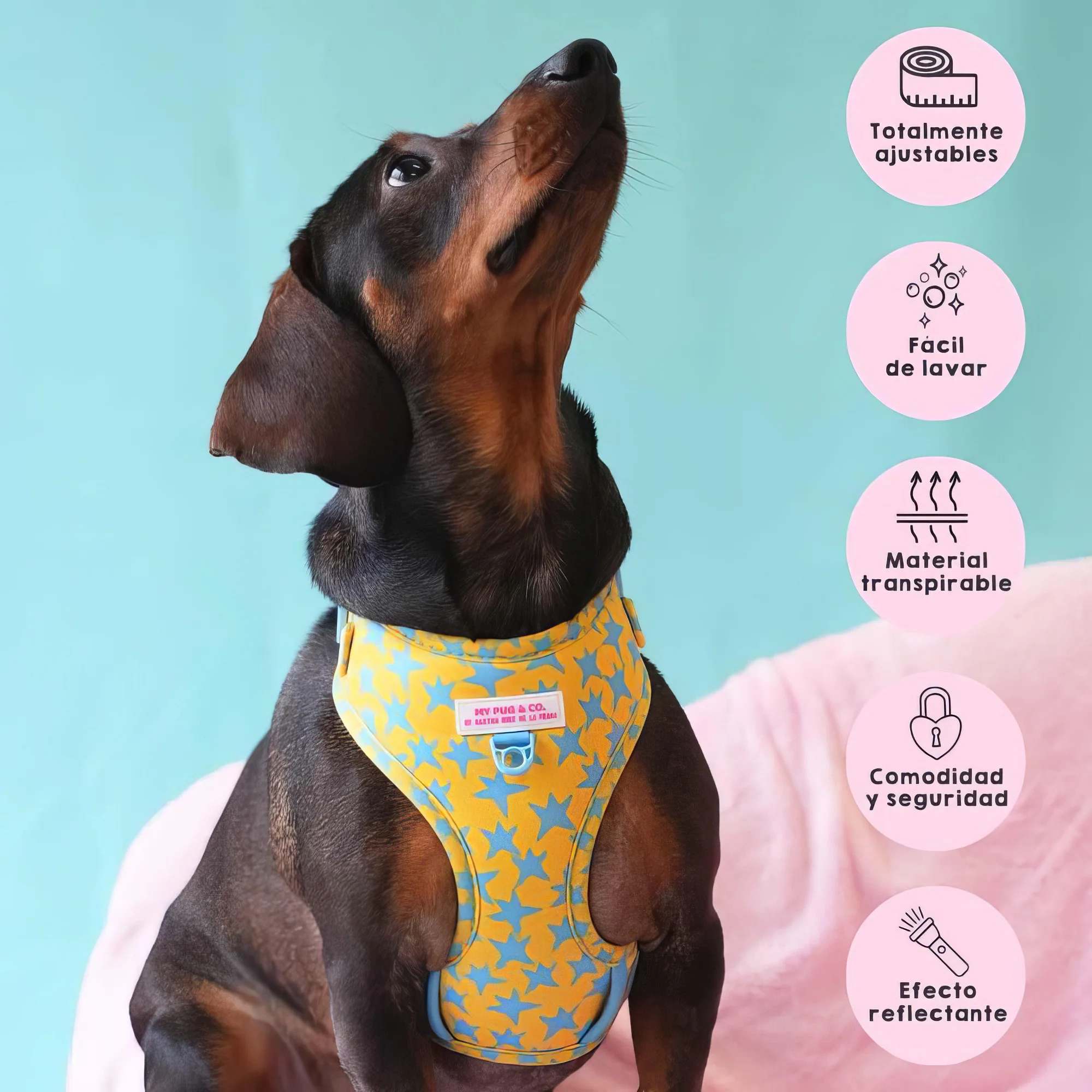 Adjustable harness at both the neck and chest, comfortably fitting dogs of all sizes. Easy to wash. Neoprene fabric on the outside. Breathable, quick-drying mesh on the inside. Metal D-ring on the back for leash attachment and on the front for ID tags. Reflective strips on the sides of the harness.