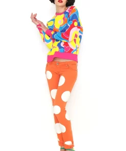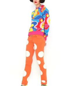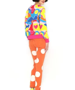 Long-sleeved crew-neck sweatshirt with a multi-color print. True to size. Sizes: 36 to 44. Model’s height: 1’80 cm. Photo size: 38. Machine wash at a maximum temperature of 30°C. Do not bleach. Do not tumble dry. Iron at a maximum temperature of 110°C. 96% COTTON, 4% SPANDEX.